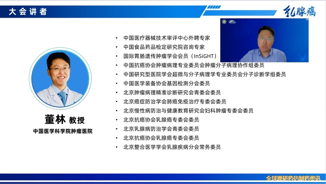 在董林教授的精彩分享后,会议进入访谈环节。主持人沈松杰教授首先感谢董教授的详细解读,并逐一介绍了参与讨论的嘉宾:大连大学附属中山医院冀学宁教授、辽宁省肿瘤医院王妍教授、南昌市人民医院徐亮教授和唐山市乳腺疾病防治中心马杰教授。随后,沈教授围绕本次访谈的四个核心议题——医保政策驱动下BRCA检测的定位转变、乳腺癌诊疗中BRCA检测的最佳时机与人群、氟唑帕利的分子创新优势,以及“检测-遗传咨询-治疗选择”完整路径的建立——引导嘉宾们展开深入探讨。