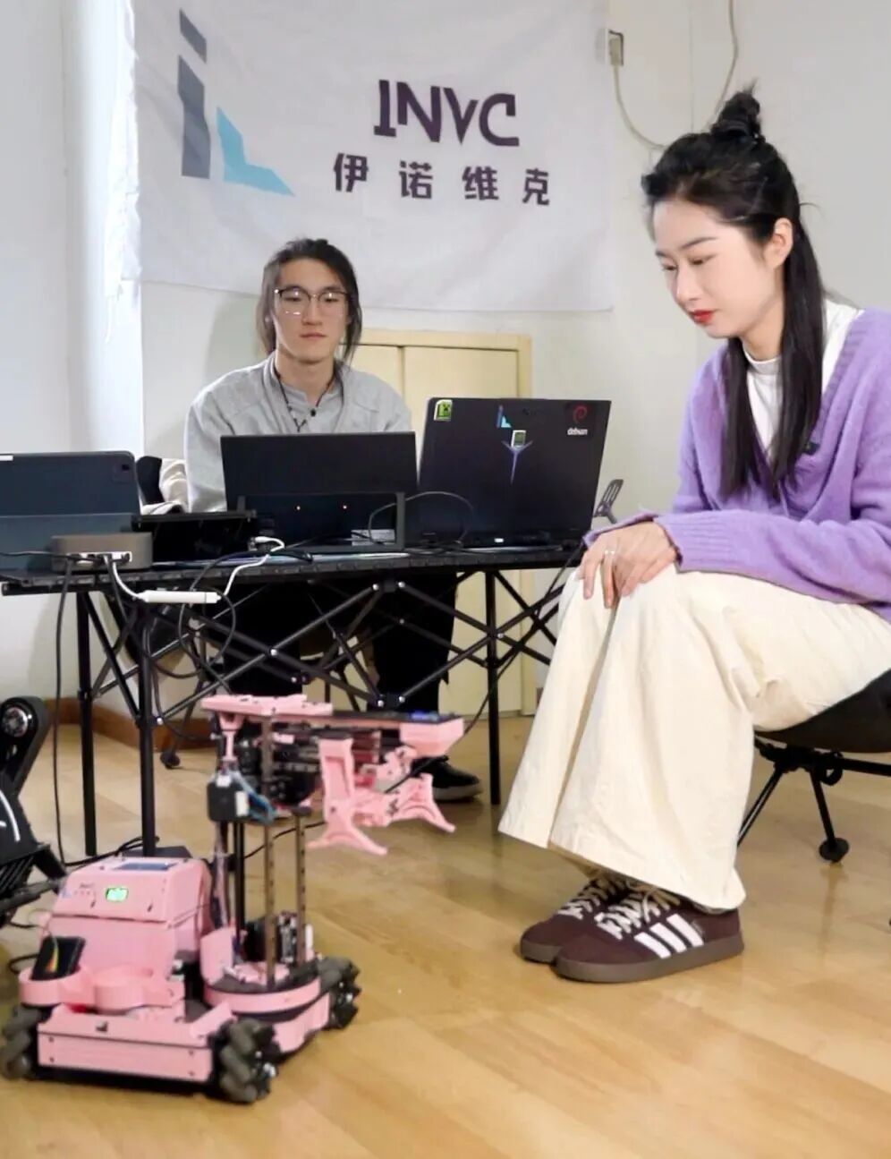 说话间,我们已经来到李沂航的办公室门口,推门进去,小伙子正对着电脑调试代码,桌上摆满了大大小小的电脑屏幕和他自己设计的机械设备,整个房间科技感十足。