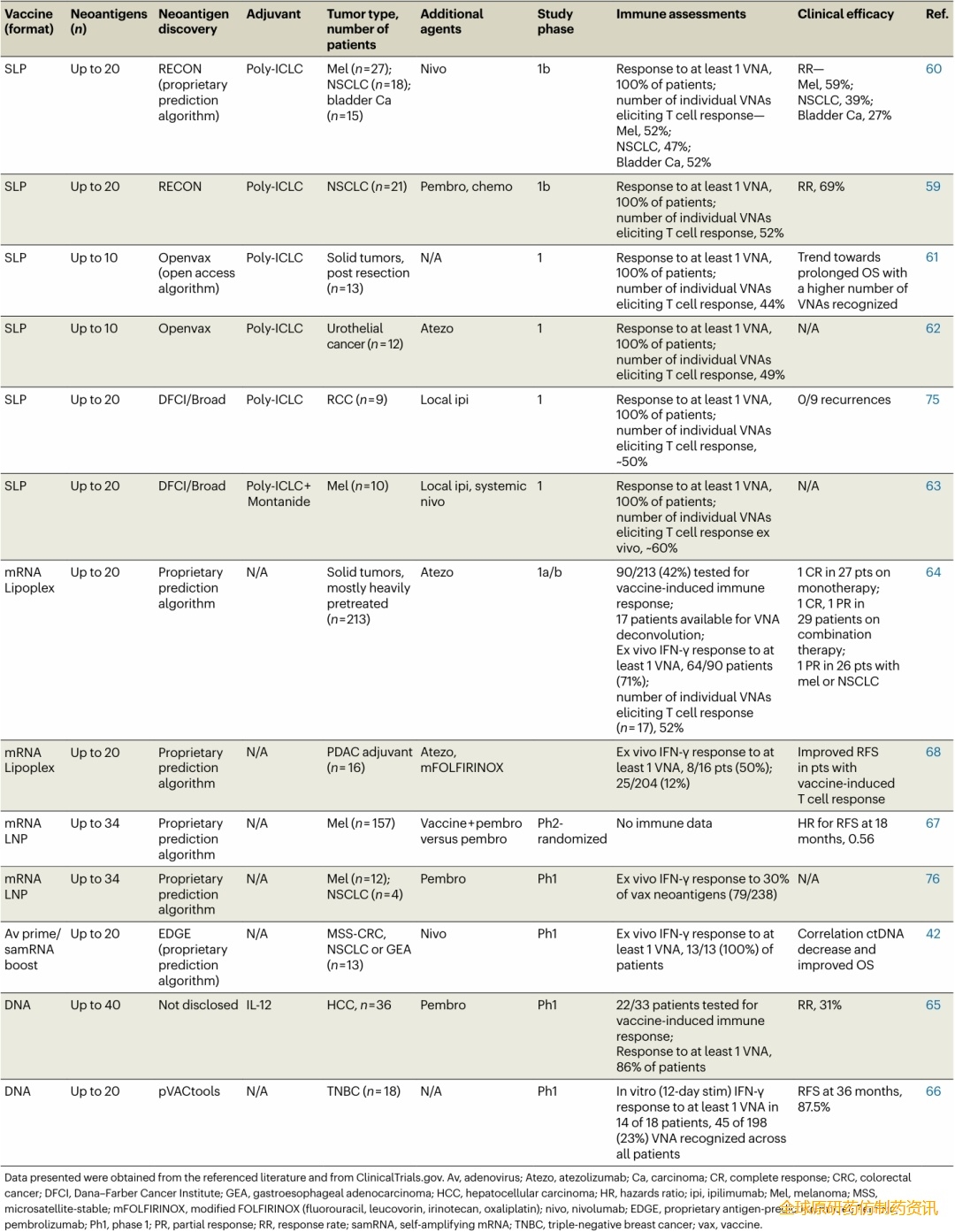 新抗原疫苗介导的辅助治疗中抗肿瘤活性的新兴证据