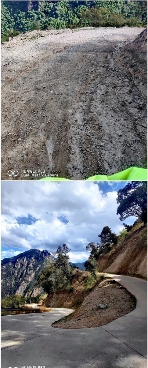 今天上坡32公里,下坡32公里,快到道孚的下坡路有小段塌方损坏路面。