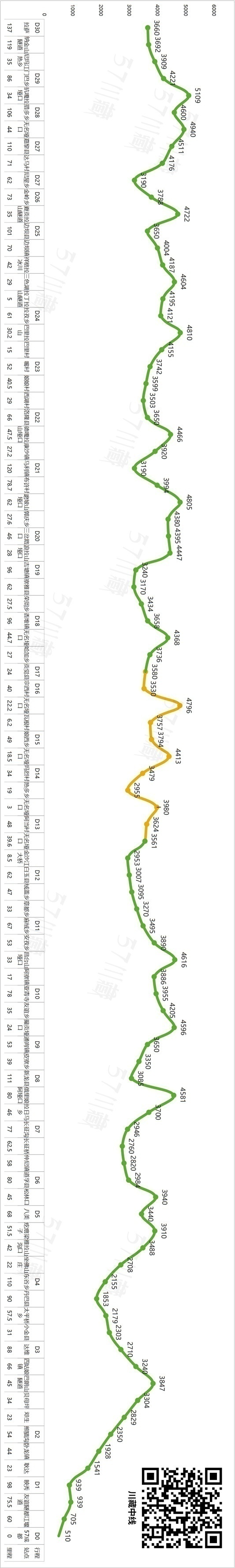 D17:娘西乡3794m-6.2km瓦根村3757m-22.2km垭口4793m-35km赤提村3788m-宗西村3530m 40公里